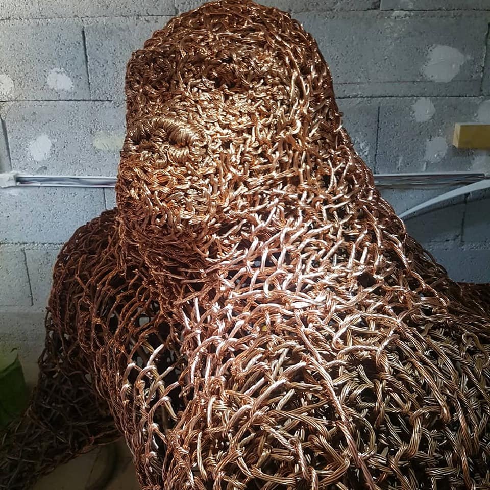 Une œuvre de résilience Cette sculpture est le miroir du parcours de l’homme. Chaque torsion du fil de cuivre semble être un effort, une mêlée remportée contre la matière. Le résultat est d’une beauté saisissante : une bête de métal qui semble pouvoir s’animer à tout instant. Le choix du cuivre, métal conducteur par excellence, n’est sans doute pas anodin : l’œuvre semble chargée d’une énergie latente, comme si le courant de la vie continuait de circuler à travers ce maillage de génie.