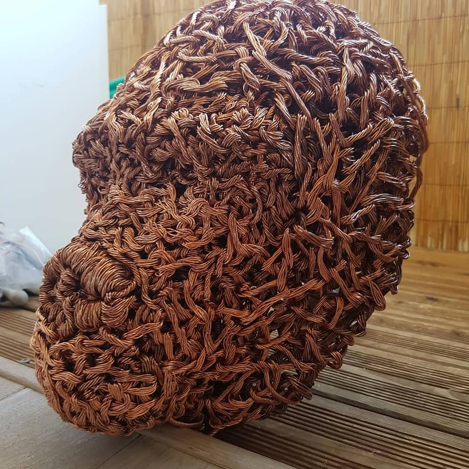 - Le processus : André utilise du fil de cuivre qu’il achète et dénude lui-même à l’aide d’une perceuse pour retirer le plastique. Il torsade ensuite les fils pour les rendre solides, utilisant une technique de reliure directement inspirée de ses scoubidous d’enfance.